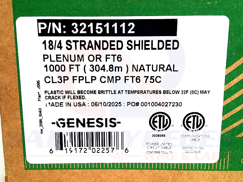 GEN-32151112 Genesis Security/Alarm Shielded 4Cond 18AWG CMP/Cl3P
