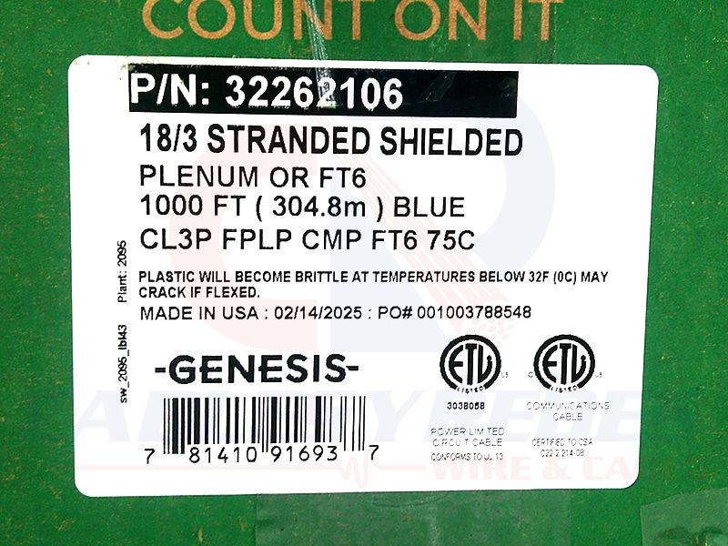 GEN-32262106 Genesis Security/Alarm Shielded 3Cond 18AWG CMP/Ft6