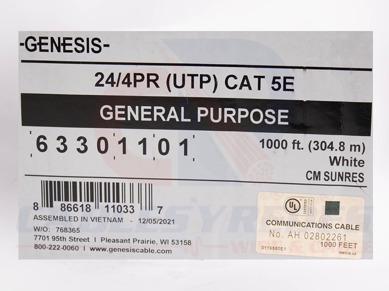 GEN-63301101 Genesis Cable UTP 4PR 24AWG Cat.5E CM Blanco CMR