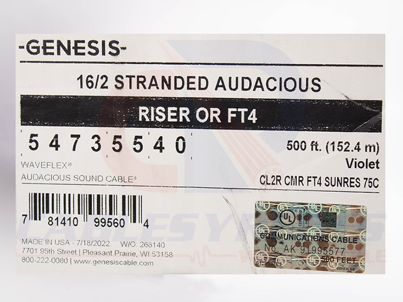 GEN-54735540 Genesis Sound Oxygen Free 2Cond 16AWG (Home Theater)CMR/Cl2R 500Ft