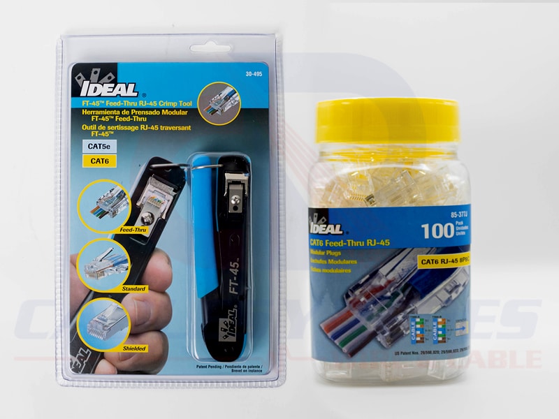 Los conectores modulares RJ-45 IDEAL® Feed-Thru y la herramienta de crimpado FT-45™ están diseñados para simplificar y mejorar la consistencia de la terminación del cable al conector de conectores modulares CAT5e y CAT6 en cables de par trenzado.