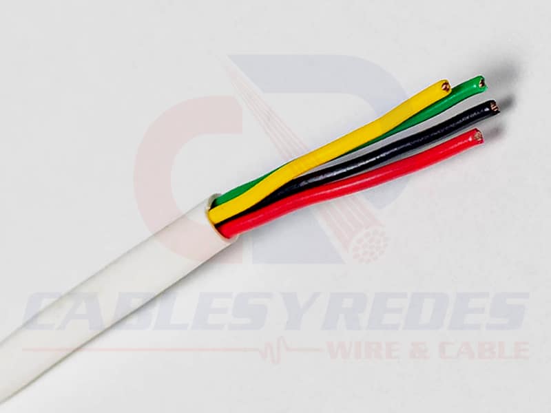 Cable de dos o cuatro conductores de cobre suave, con aislamiento individual termoplástico de policloruro de vinilo semirígido (SR-PVC) e identificados de acuerdo a código, cubierta exterior termoplástico de policloruro de vinilo (PVC) blanco.